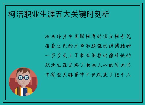 3、关键球员的表现与影响